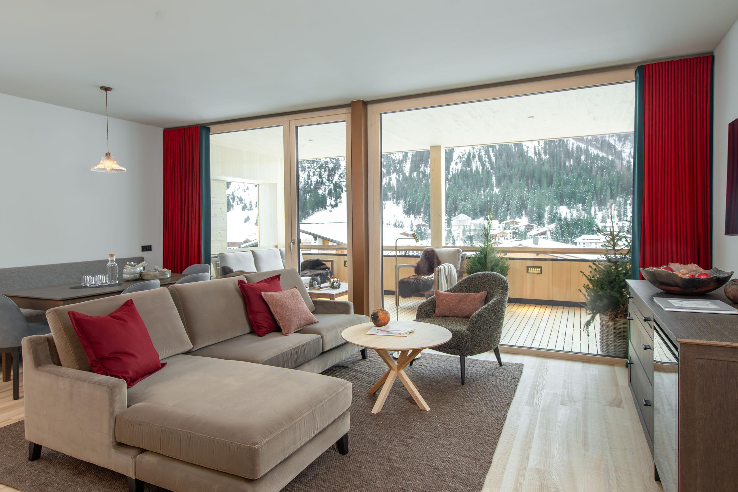 Großzügig. Privat. Modern. Das Apartment Chalet mit Lodge im alpinen Stil ist der Rückzugsort für bis zu fünf Personen. Haben wir den Weinkühlschrank schon erwähnt? 2 separate Schlafzimmer